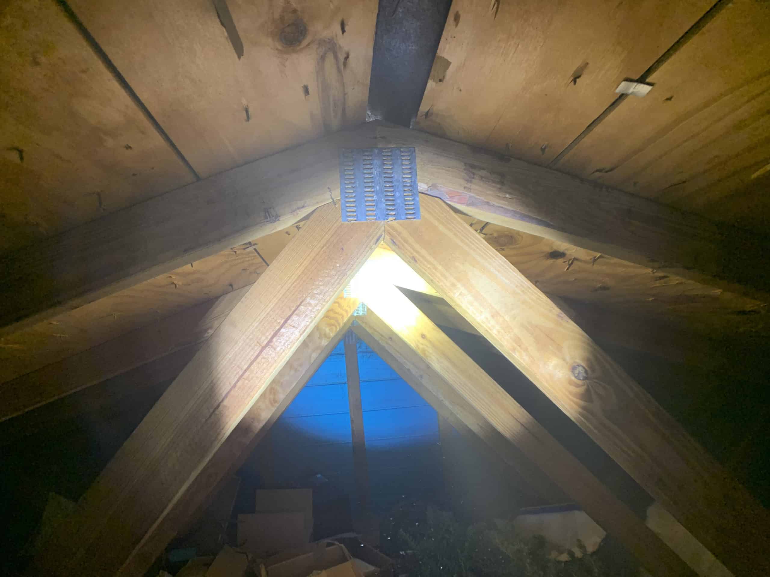 Some homes have attic gables, which are vents installed on the exterior of attic walls. They allow air to pass through and vent heat to the outside. Metal screens are generally installed to prevent invasive pests like squirrels, bats, and birds from getting inside. These screens can rust and crack open, permitting wildlife life such as raccoons to break in like thieves in the night.