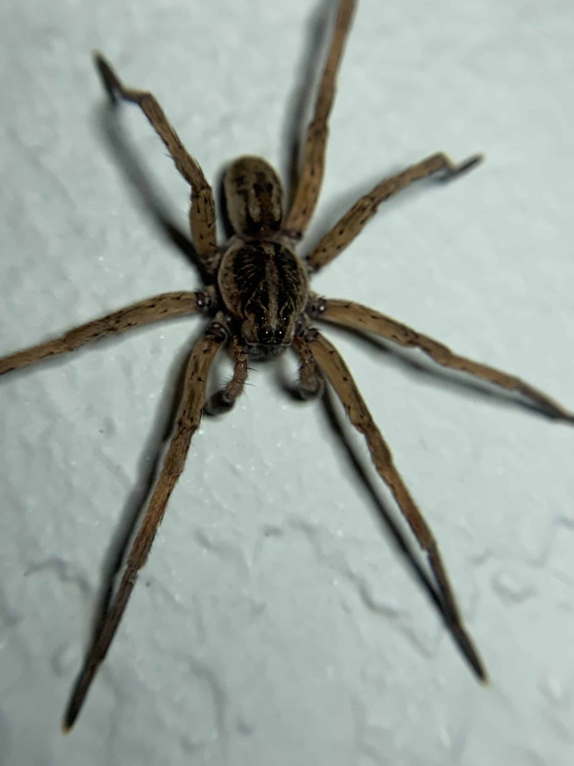 Spiders are usually separated into two groups: hunting spiders and web spinning spiders. Hunting spiders do just that, they go out and hunt. These are the spiders that most people will see prompting a call for pest control. In Florida, the wolf spider and the huntsman spider are the most common spiders seen around homes and businesses. Hunting spiders have excellent sight, speed and agility. They will hide behind natural objects and pounce on their prey. Wolf spiders carry their babies on their backs and if you try to hit a wolf spider, all of her babies will quickly scatter away.